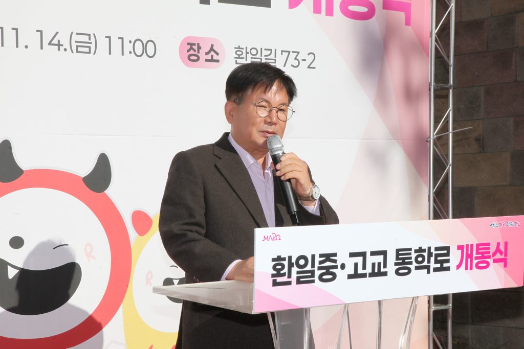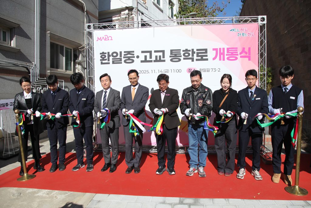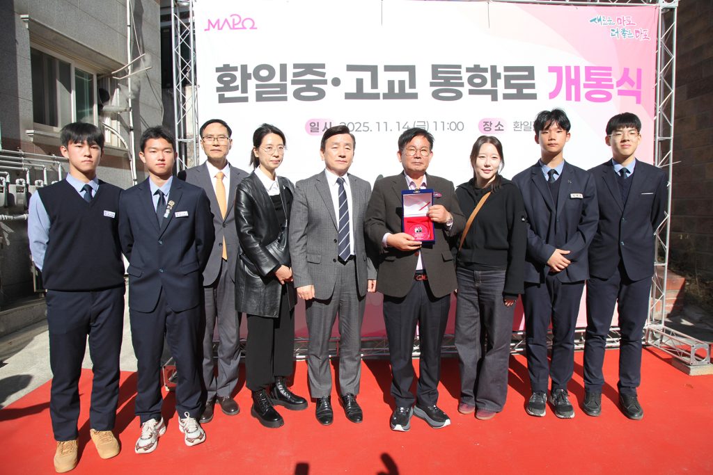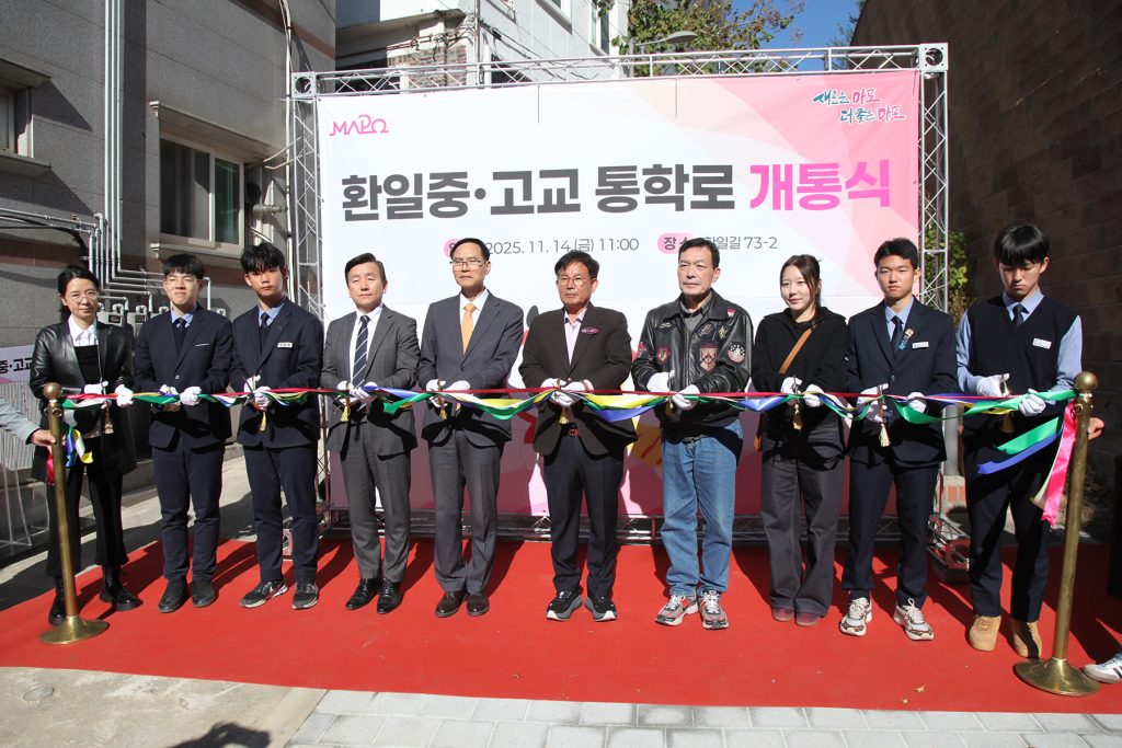 2025년 11월 14일(금) 11:00, 환일중·고등학교 통학로 개통식이 성대한 가운데 개최되었습니다. 박강수 마포구청장님을 비롯해 지역주민, 환일중·고등학교 교장·교감선생님, 학교운영위원장, 학부모회 등 많은 분들이 참석하시어 자리를 빛내 주셨습니다.
